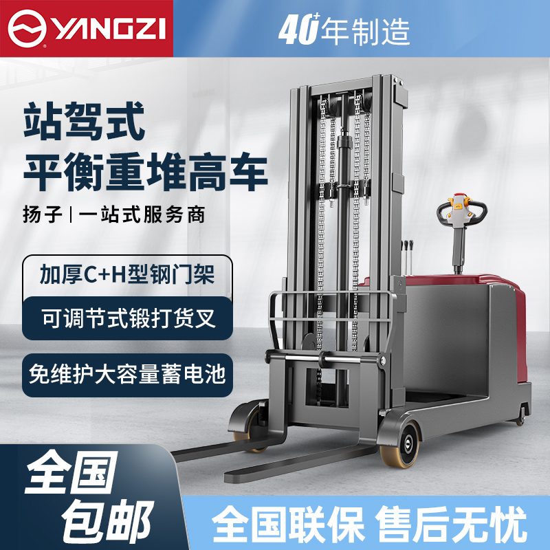 揚子無腿式升高堆垛車CPD-J:全電動的站駕式平衡重推堆高車,強勁高效操作便捷,不挑托盤,還配有免維護電池續航更長久。
